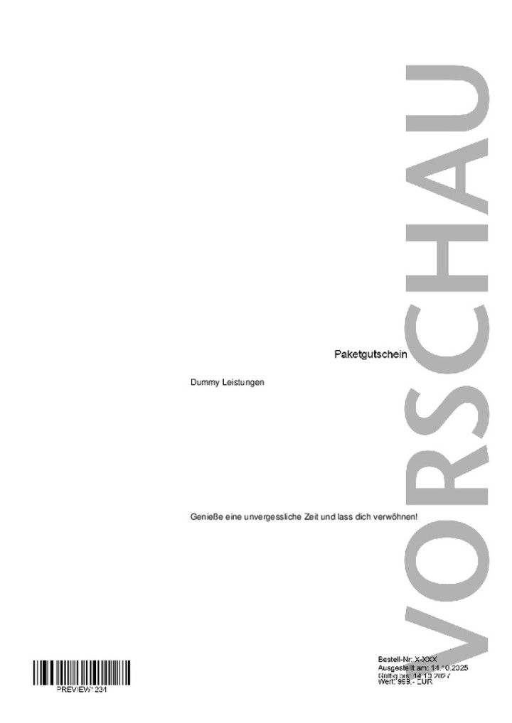 Möchten Sie eine persönliche Grußnachricht auf dem Gutschein hinterlassen? Kein Problem – Sie können den Gutschein individuell gestalten. Den Gutschein erhalten Sie per E-Mail als Print@Home-Version.